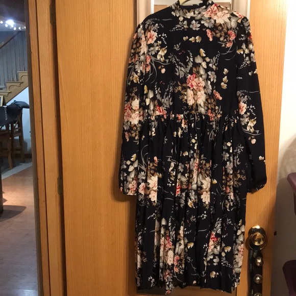 Shein Dresses Blue Floral Dress Shein Size Xl High Fitted Collar With Ruffle Pleated Skirt Poshmark